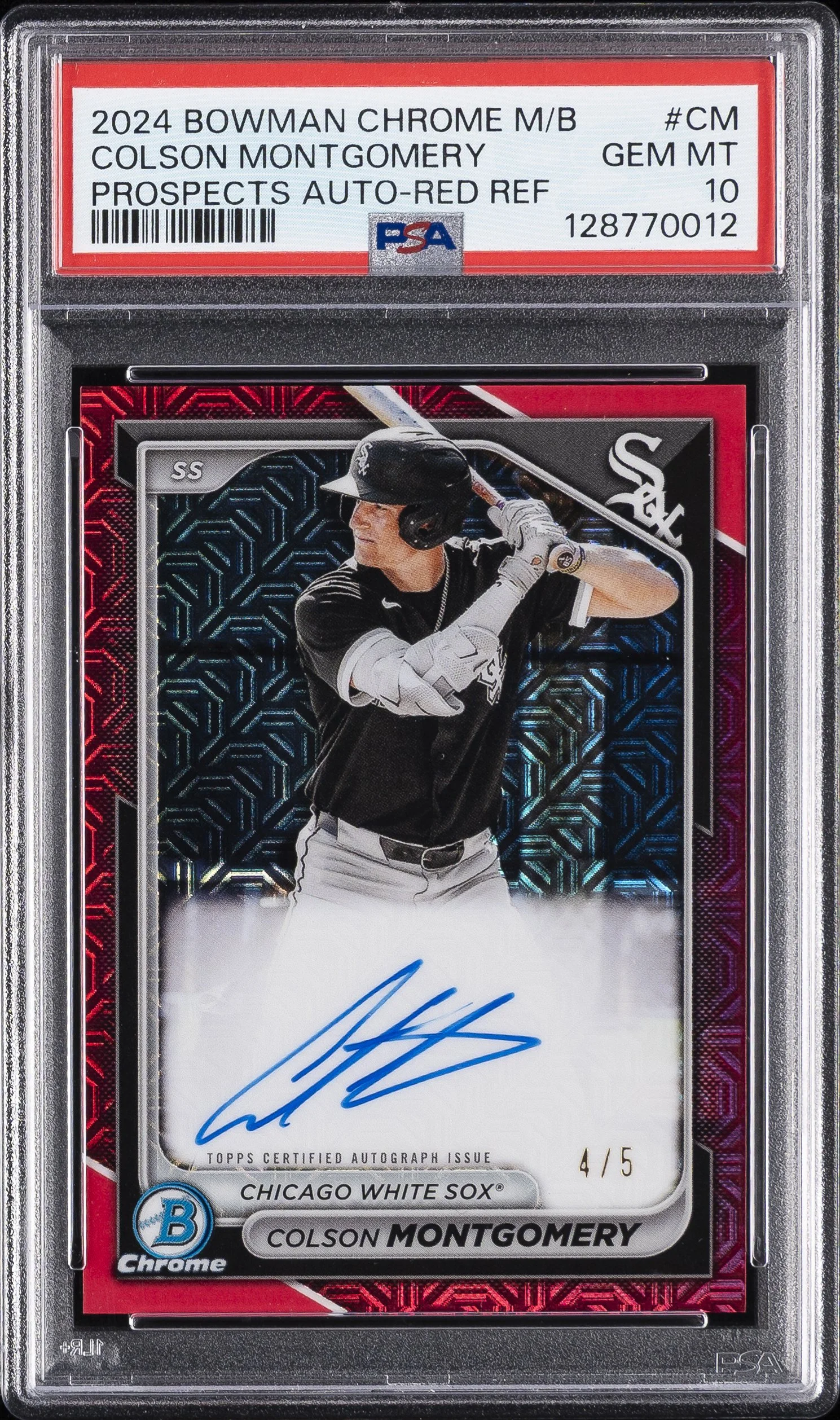 | White Sox | Colson Montgomery | 2024 BOWMAN MEGA BOX CHROME BOWMAN PROSPECT MEGA AUTOGRAPHS #CM COLSON MONTGOMERY PROSPECTS AUTO-RED REF PSA 10 |