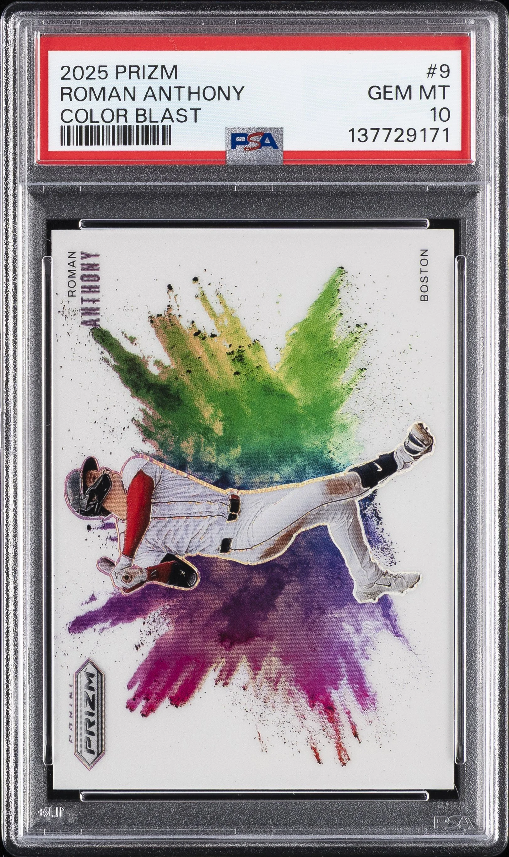 | Red Sox | Roman Anthony | 2025 PANINI PRIZM COLOR BLAST #9 ROMAN ANTHONY PSA 10 |