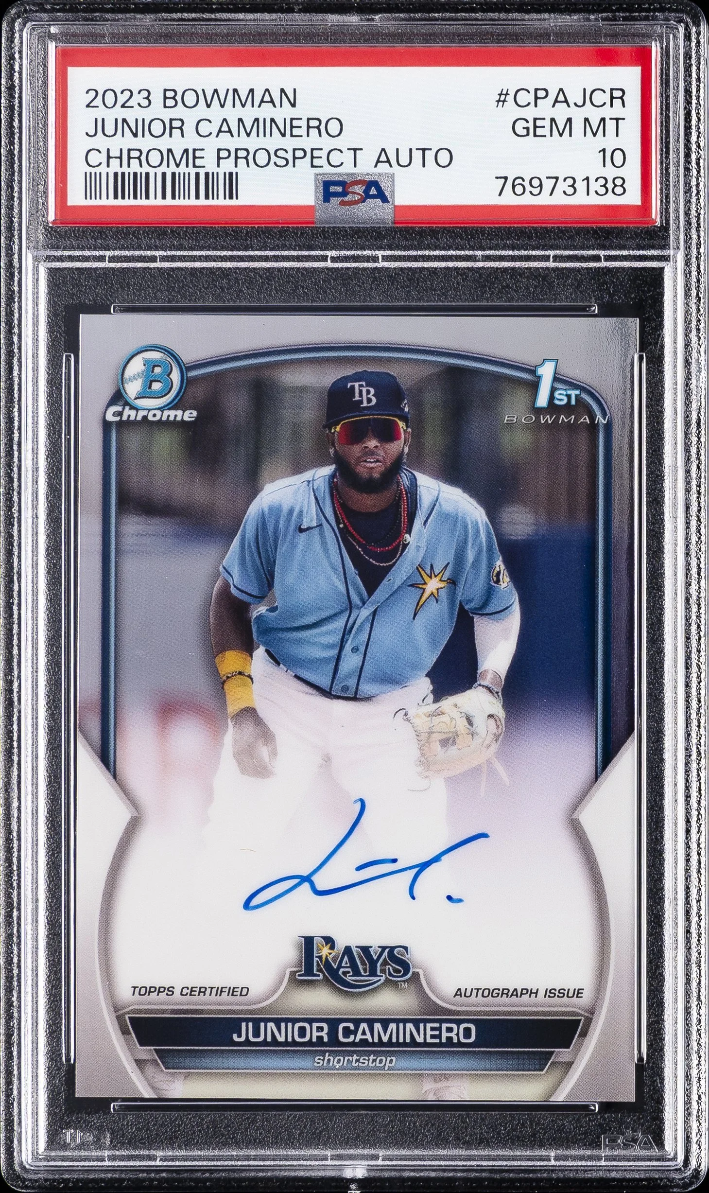 | Rays | Junior Caminero | 2023 BOWMAN CHROME PROSPECT AUTOGRAPHS #CPAJCR JUNIOR CAMINERO CHROME PROSPECT AUTO. PSA 10 |