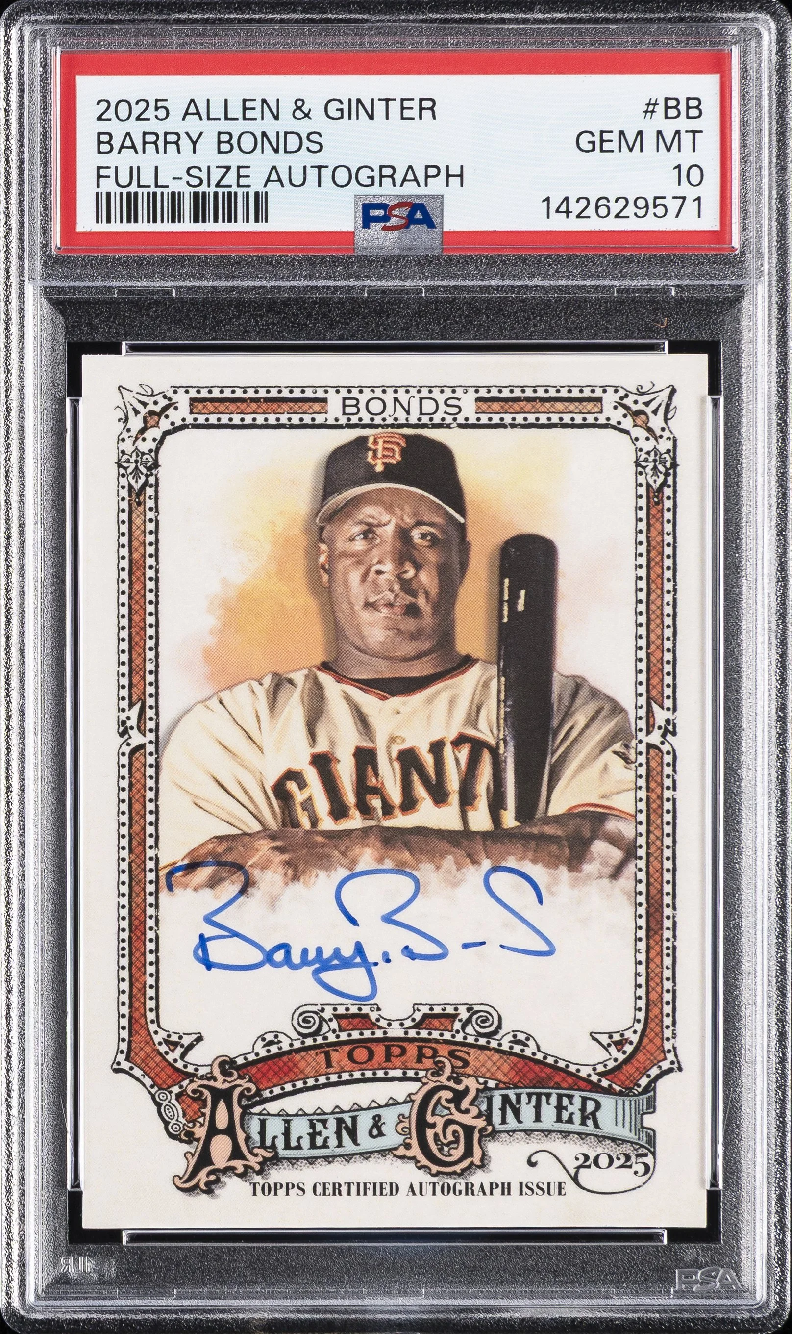 | Giants | Barry Bonds | 2025 TOPPS ALLEN & GINTER FULL SIZE AUTOGRAPHS #BB BARRY BONDS PSA 10 |