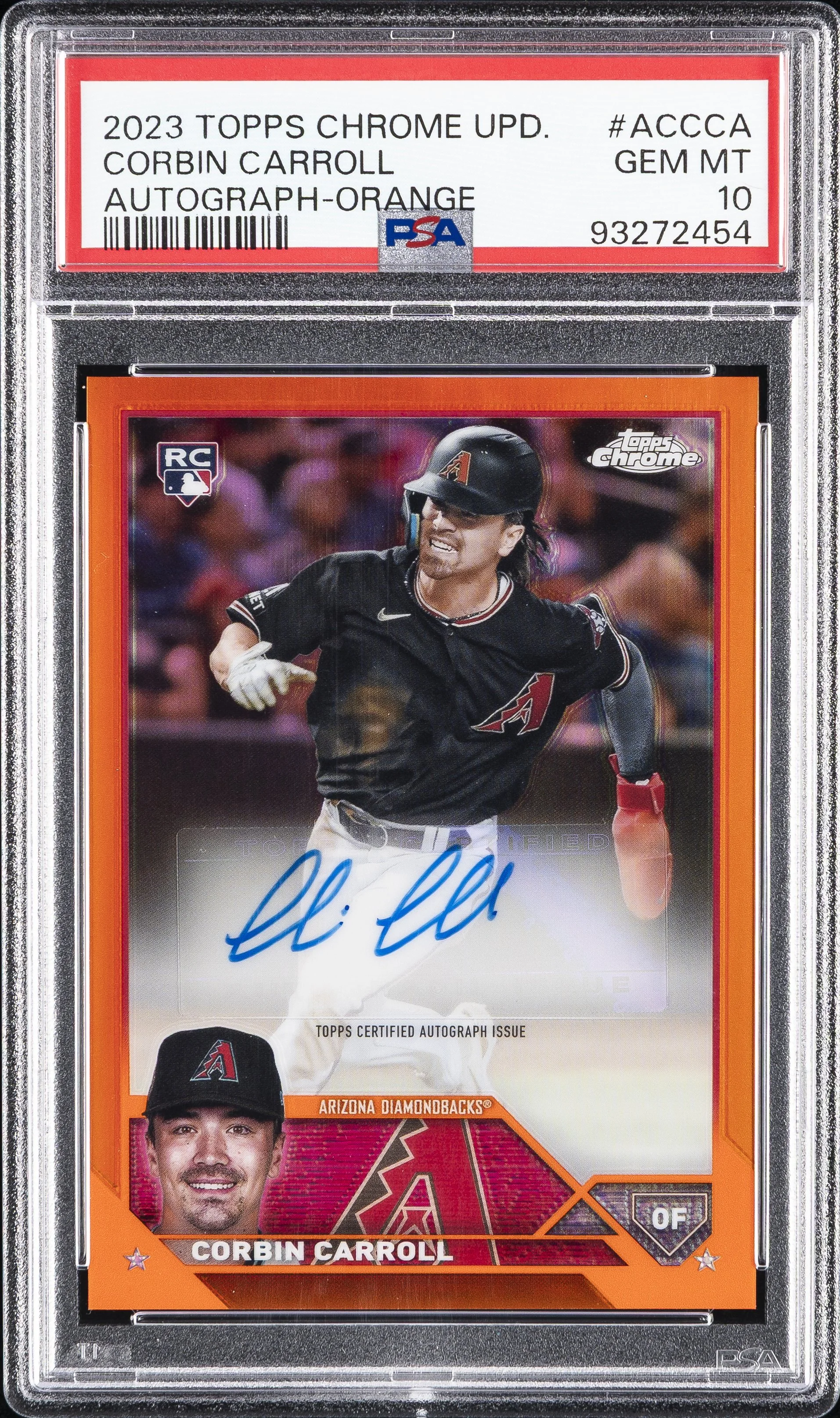 | Diamondbacks | Corbin Carroll | 2023 TOPPS CHROME UPDATE CORBIN CARROLL ORANGE AUTO /25 PSA 10 #ACCCA |