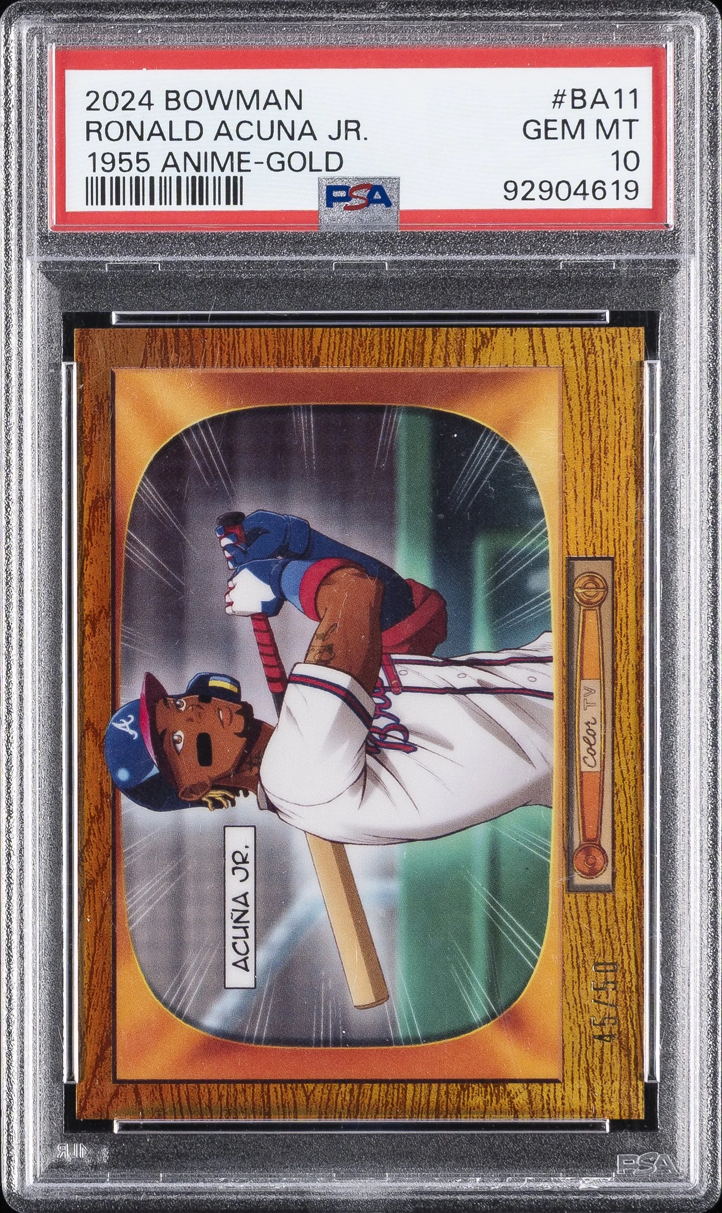 | Braves | Ronald Acuna Jr. | 2024 BOWMAN 1955 BOWMAN ANIME #BA11 RONALD ACUNA JR. 1955 ANIME-GOLD REFRACTOR PSA 10 |