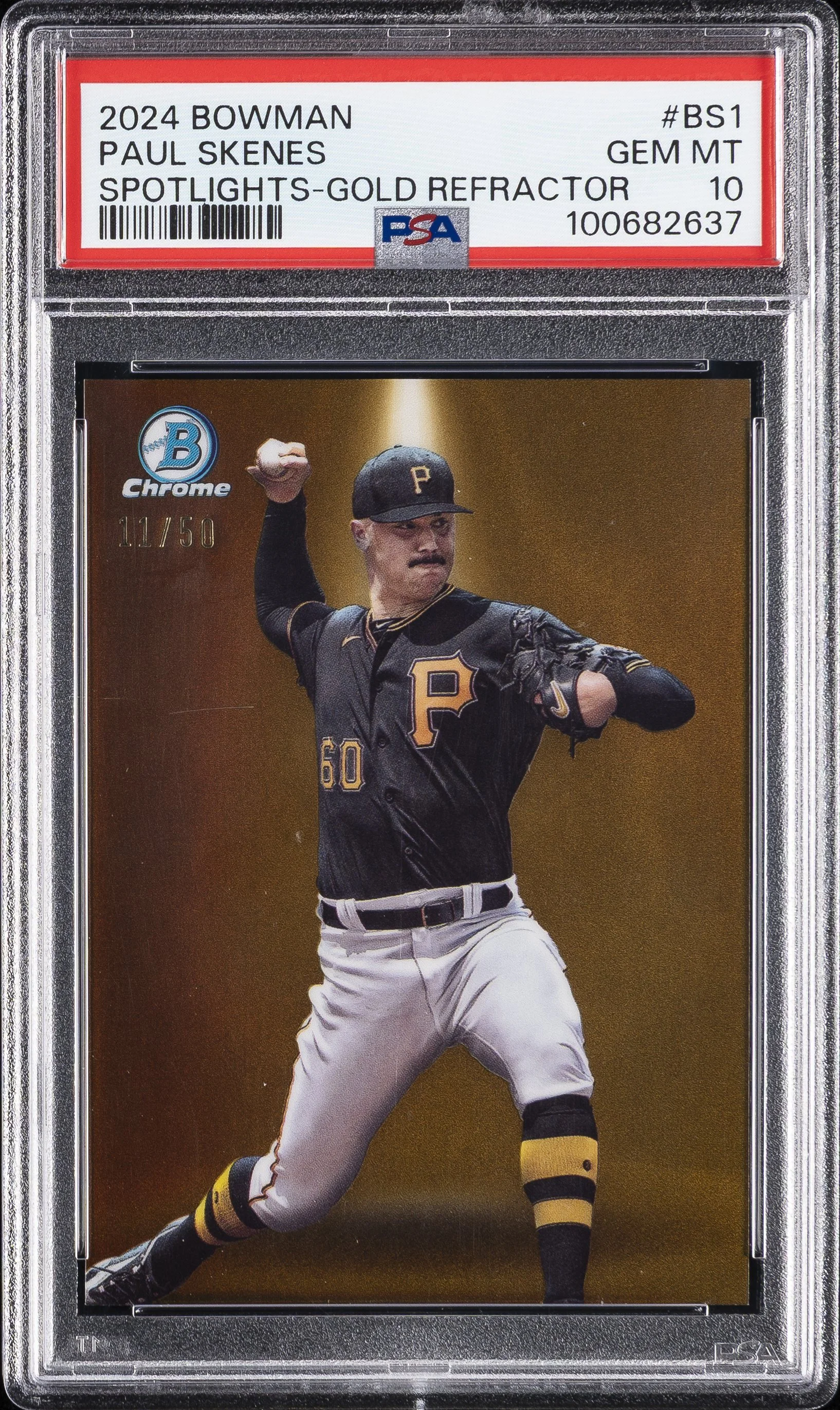 | Pirates | Paul Skenes | 2024 BOWMAN BOWMAN SPOTLIGHTS #BS1 PAUL SKENES SPOTLIGHTS-GOLD REFRACTOR PSA 10 |
