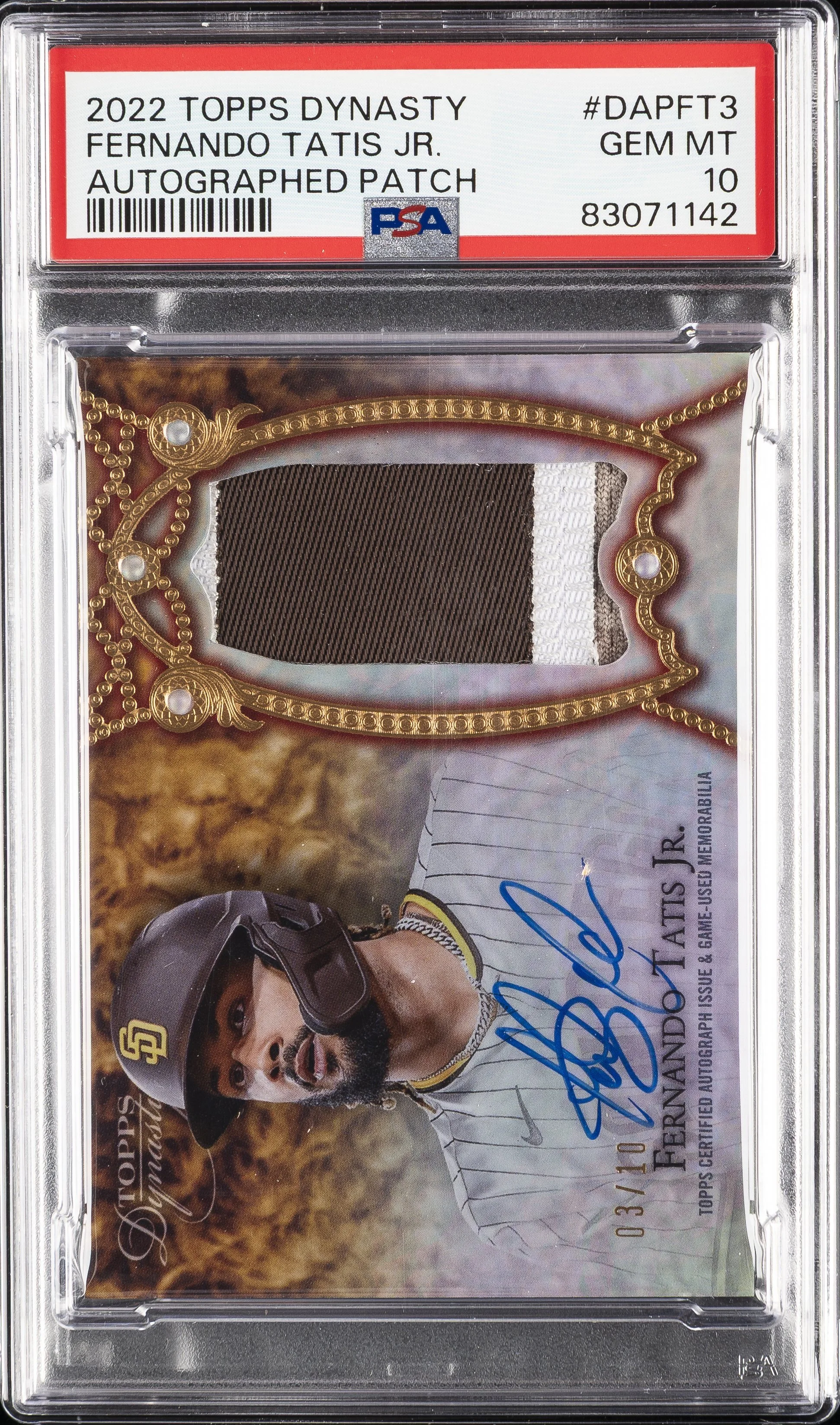 | Padres | Fernando Tatis Jr. | 2022 TOPPS DYNASTY AUTOGRAPHED PATCH #DAPFT3 FERNANDO TATIS JR. PSA 10 |