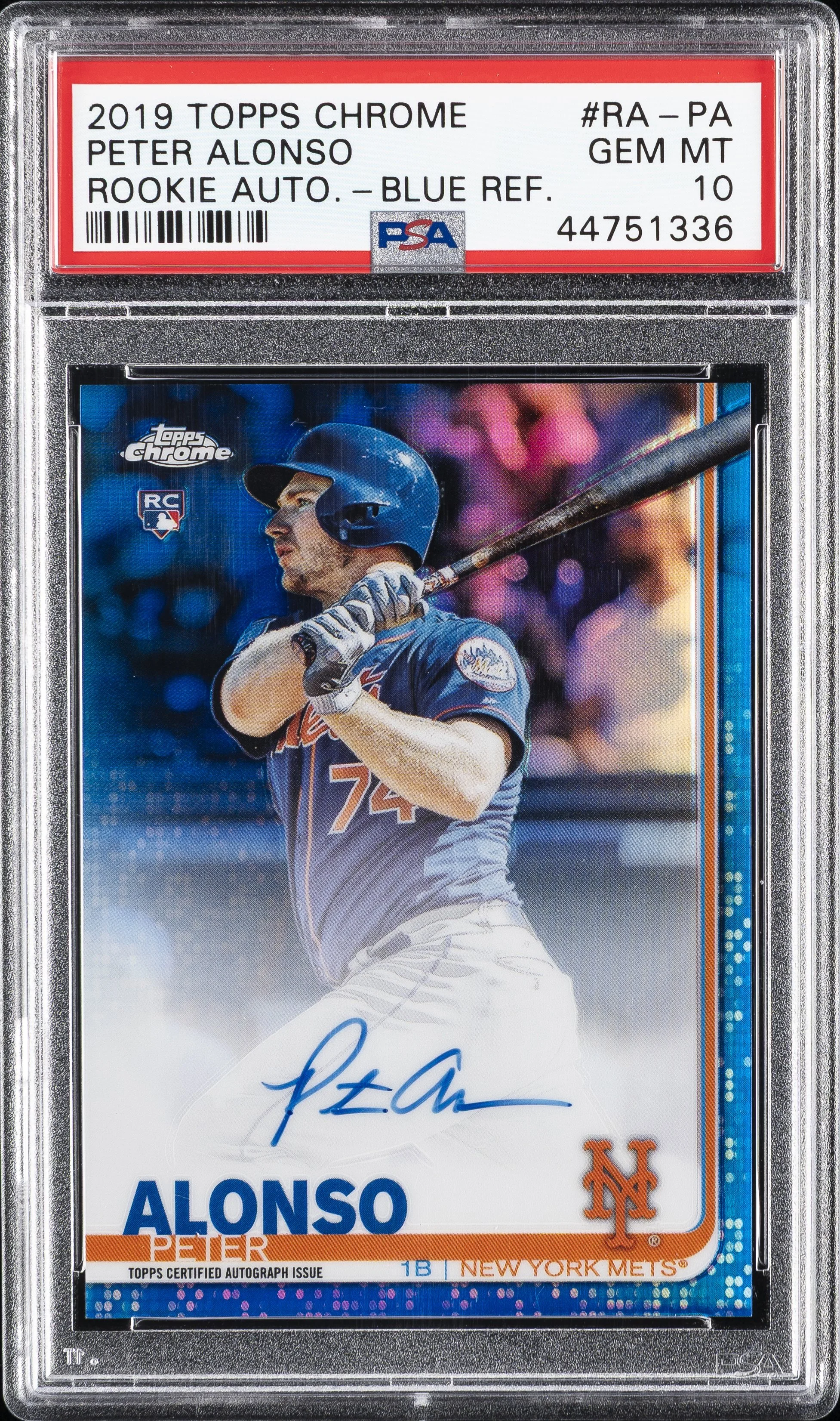 | Mets | Pete Alonso | 2019 TOPPS CHROME ROOKIE AUTOGRAPHS #RA-PA PETER ALONSO ROOKIE AUTO-BLUE REF. PSA 10 |