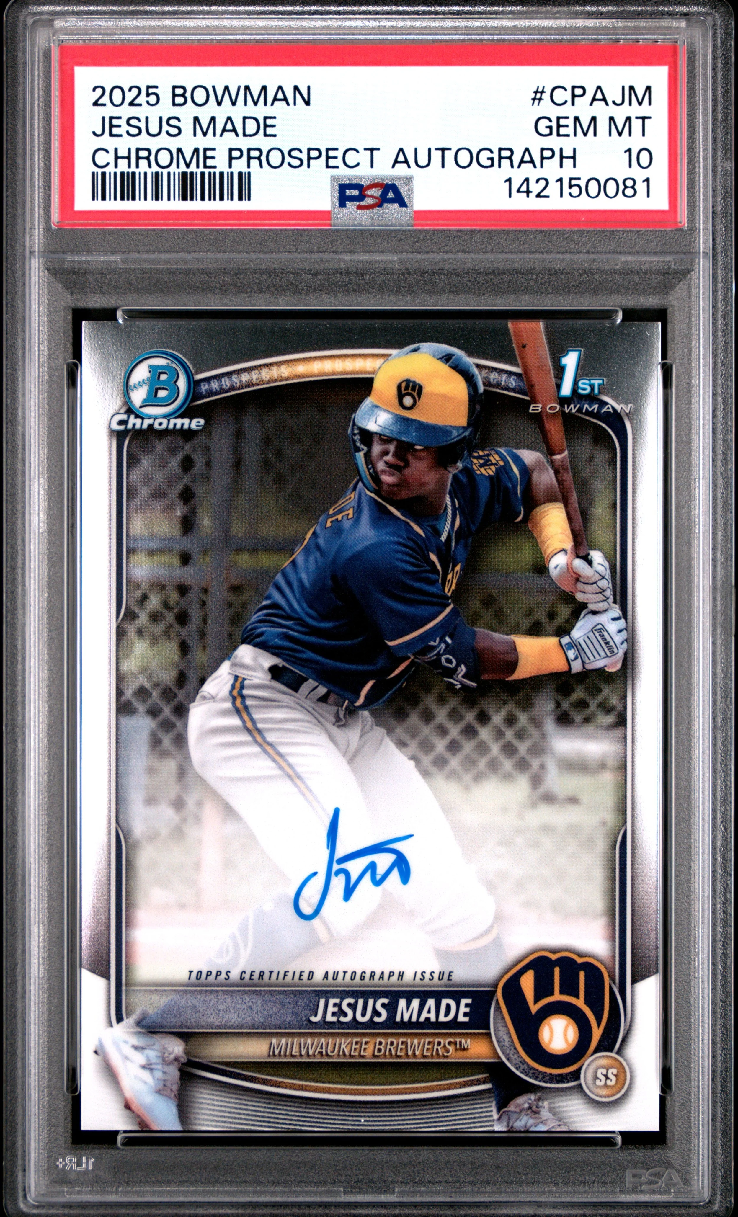 | Brewers | Jesus Made | 2025 BOWMAN CHROME PROSPECT AUTOGRAPHS #CPAJM JESUS MADE PSA 10 |
