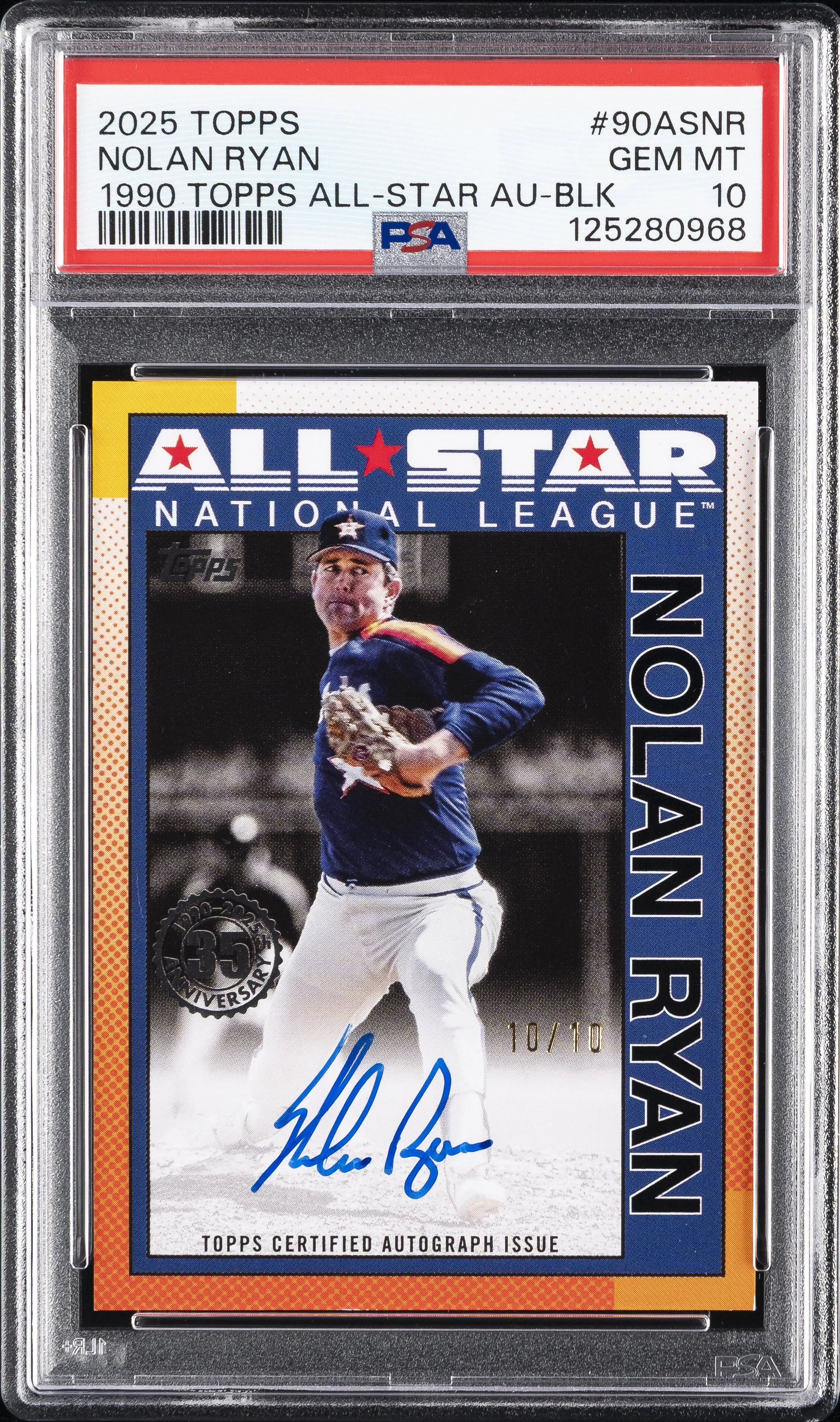 | Astros | Nolan Ryan | 2025 TOPPS 1990 TOPPS ALL-STAR AUTOGRAPHS #90ASNR NOLAN RYAN 1990 TOPPS ALL-STAR AU-BLK PSA 10 |
