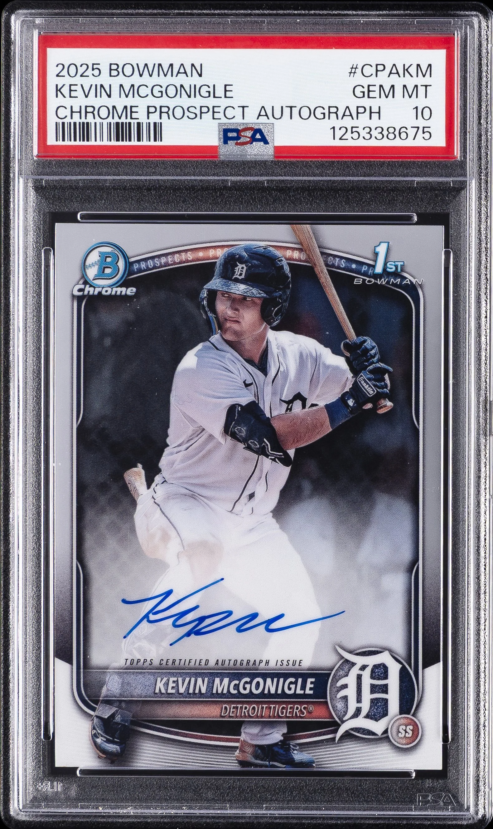 | Tigers | Kevin McGonigle | 2025 BOWMAN CHROME PROSPECT AUTOGRAPHS #CPAKM KEVIN MCGONIGLE PSA 10 |