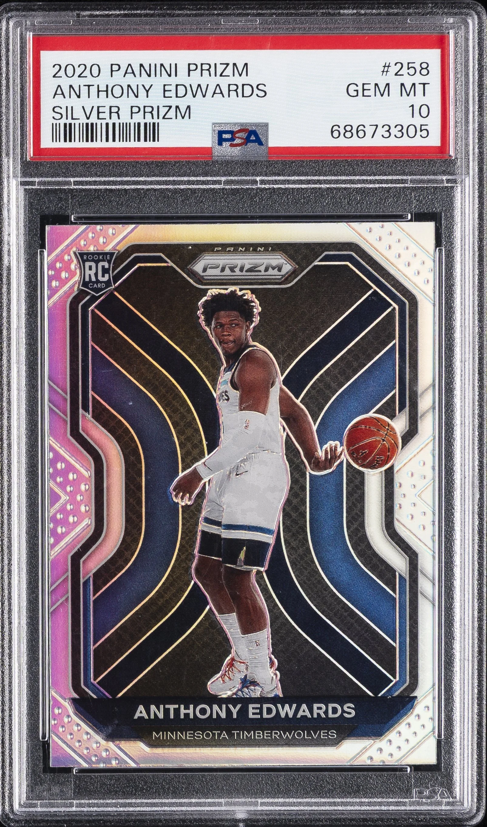 TimberwolvesAnthony Edwards2020 PANINI PRIZM #258 ANTHONY EDWARDS SILVER PRIZM PSA 10
