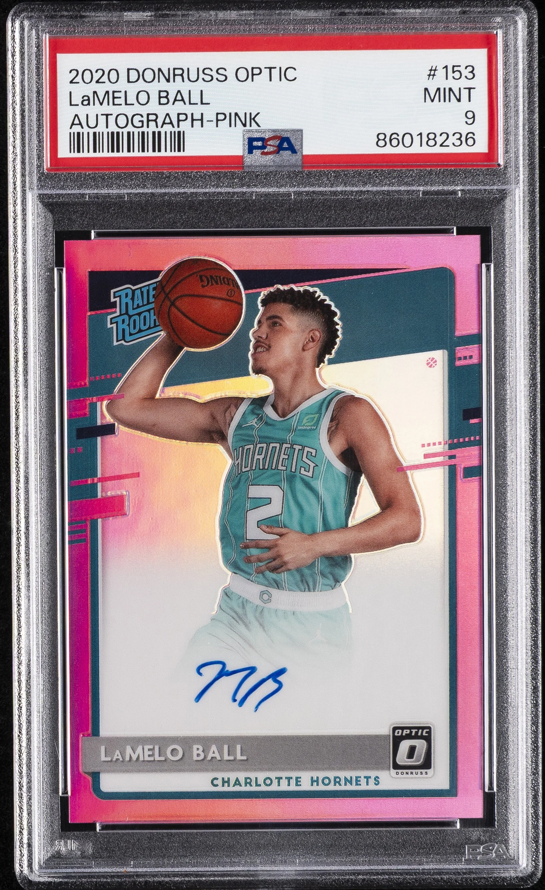 HornetsLaMelo Ball2020 PANINI DONRUSS OPTIC #153 LaMELO BALL AUTOGRAPH-PINK PSA 9
