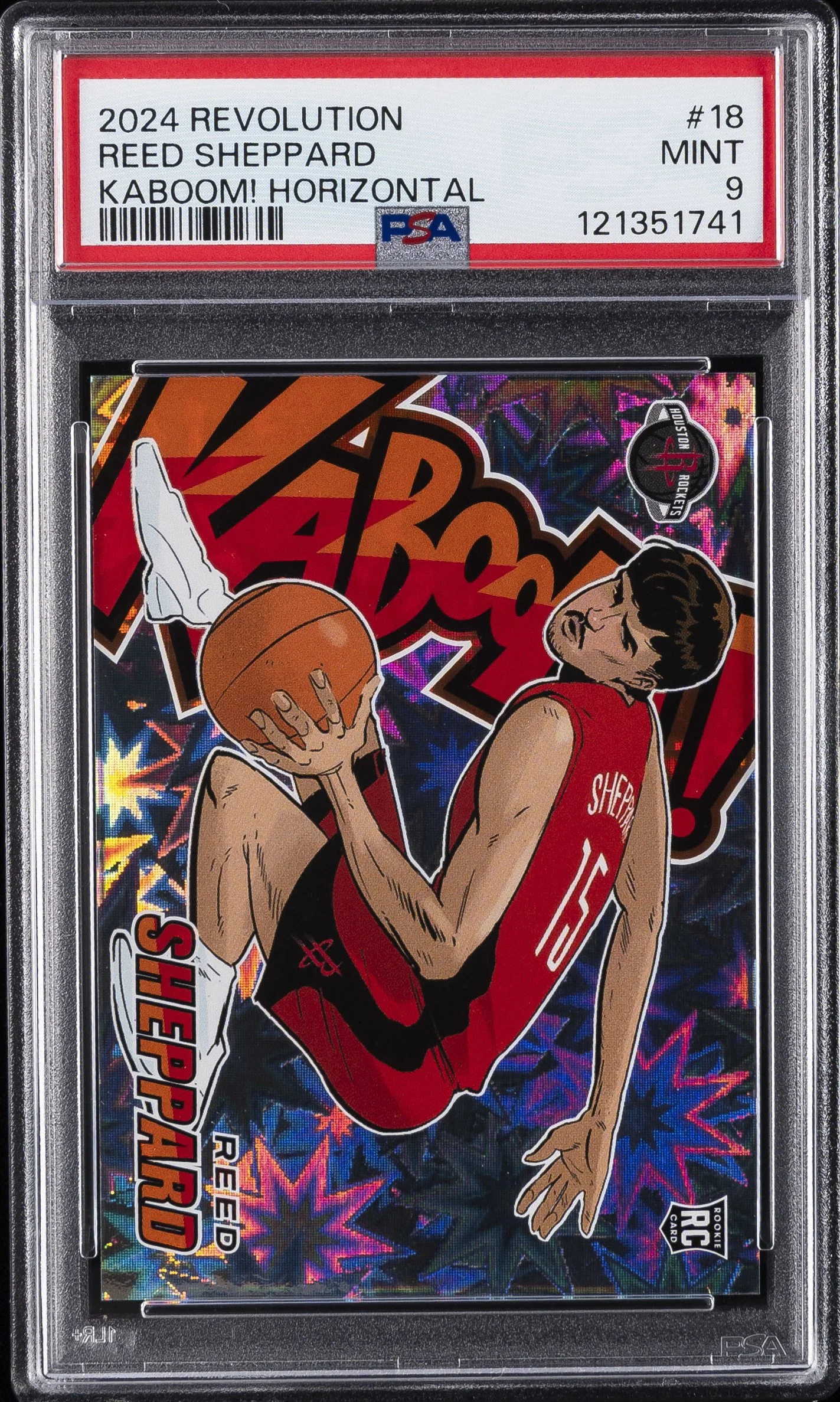 | Rockets | Reed Sheppard | 2024 PANINI REVOLUTION REED SHEPPARD HORIZONTAL KABOOM PSA 9 #18 |