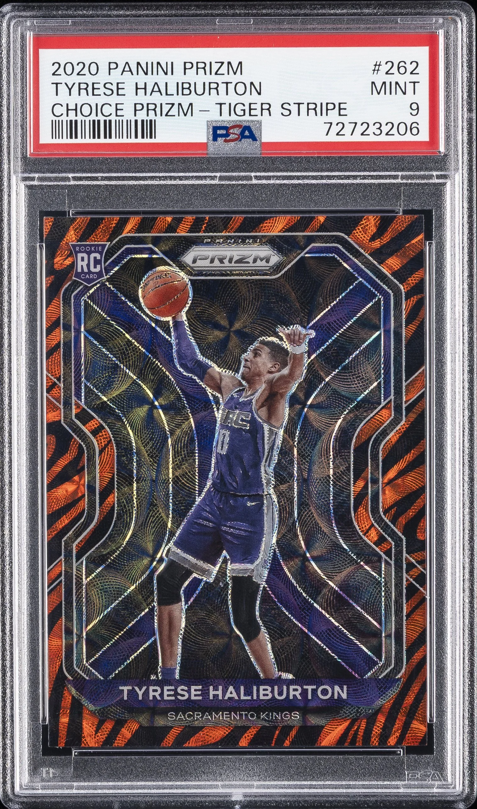 2020 PANINI PRIZM #262 TYRESE HALIBURTON CHOICE PRIZM-TIGER STRIPE PSA 9
