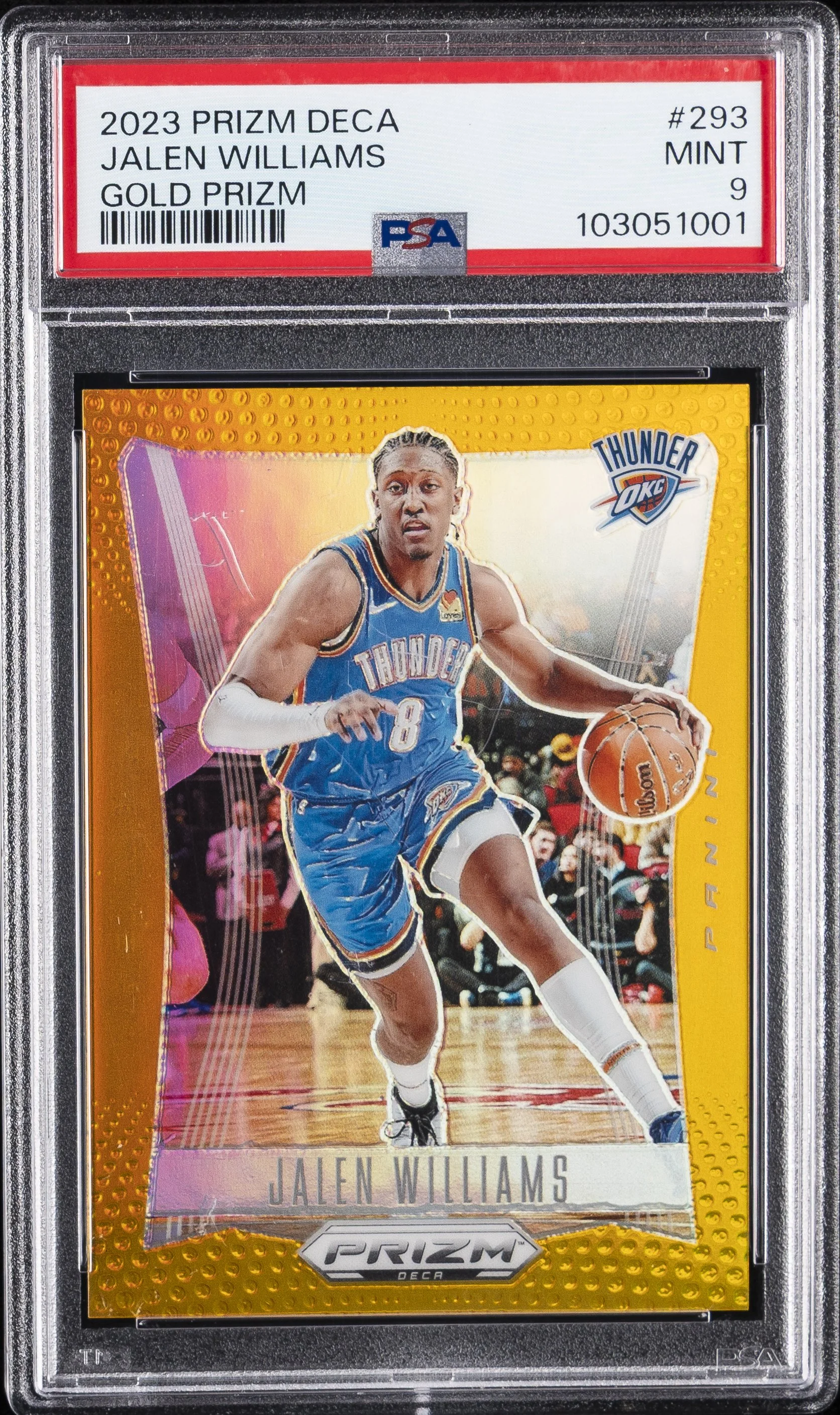 | Thunder | Jalen Williams | 2023 PANINI PRIZM DECA #293 JALEN WILLIAMS GOLD PRIZM PSA 9 |