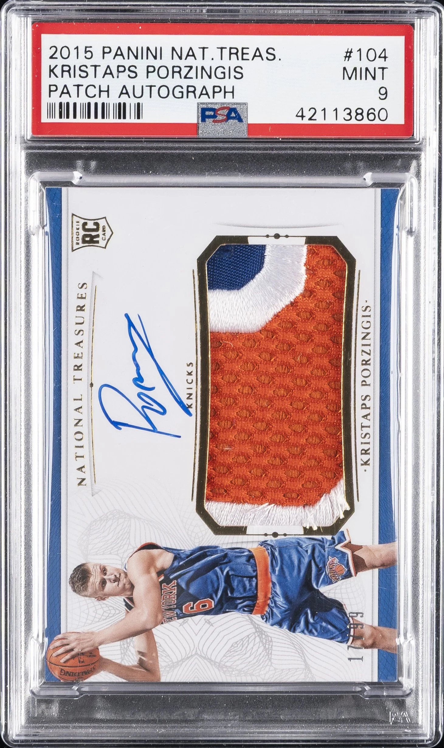 2015 NATIONAL TREASURES PATCH AUTO #104 KRISTAPS PORZINGIS PSA 9