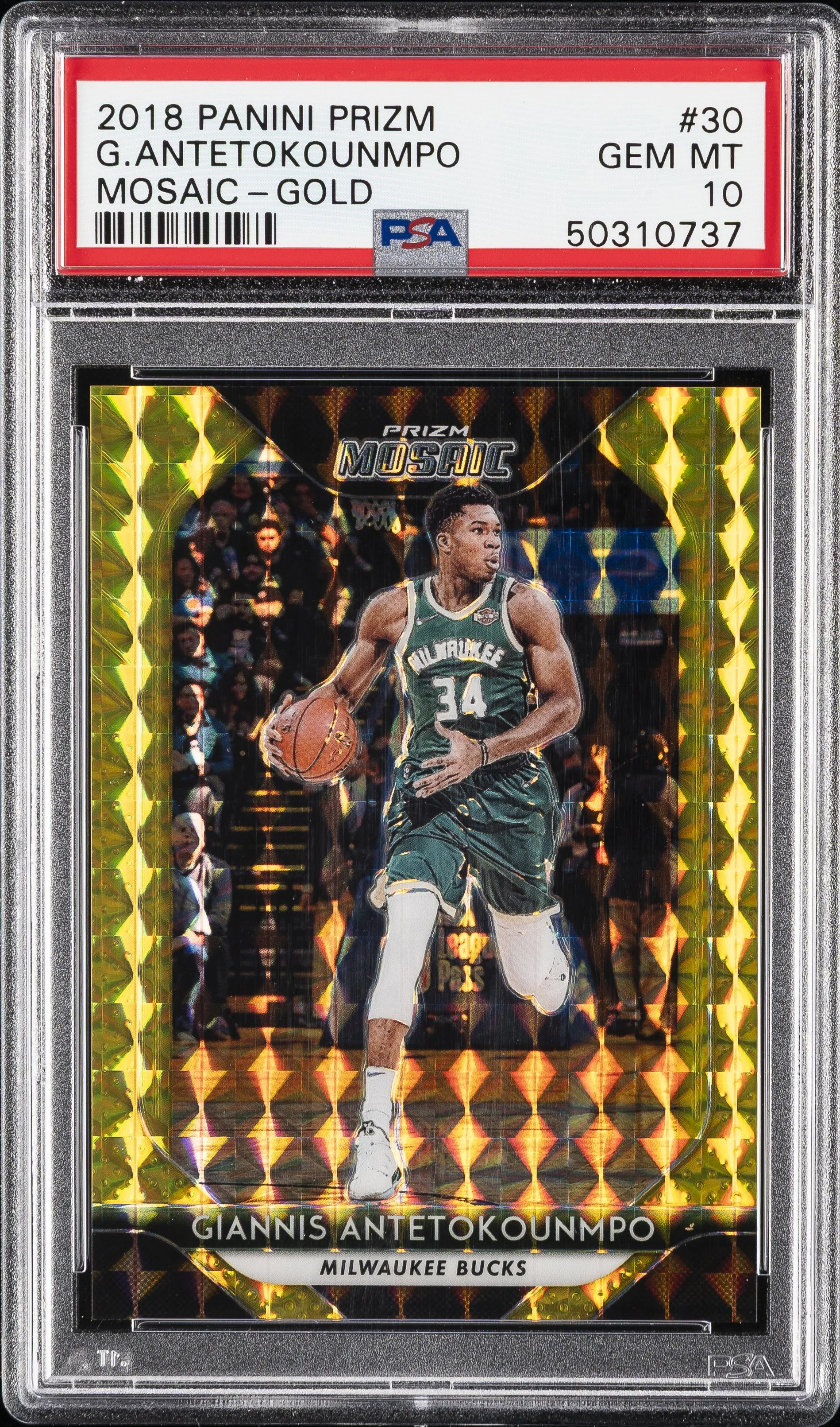 | Bucks | Giannis Antetokounmpo | 2018 PANINI PRIZM MOSAIC #30 G.ANTETOKOUNMPO MOSAIC-GOLD PSA 10 |