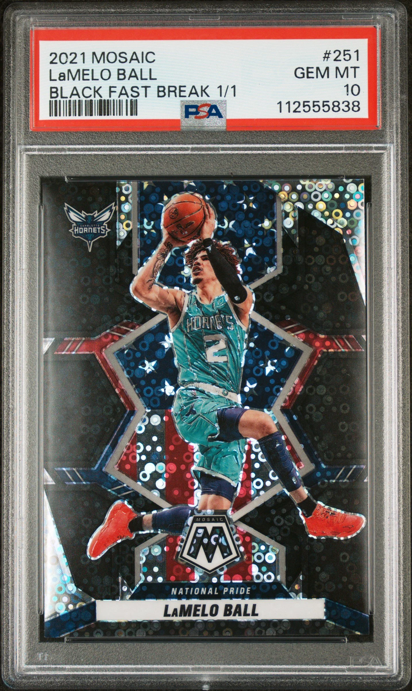 2021 PANINI MOSAIC #251 LaMELO BALL BLACK FAST BREAK 1/1 PSA 10