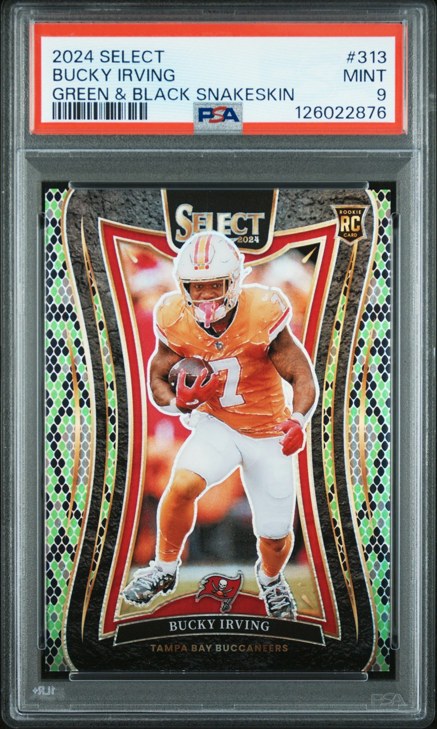 2024 PANINI SELECT #313 BUCKY IRVING GREEN & BLACK SNAKESKIN PSA 9