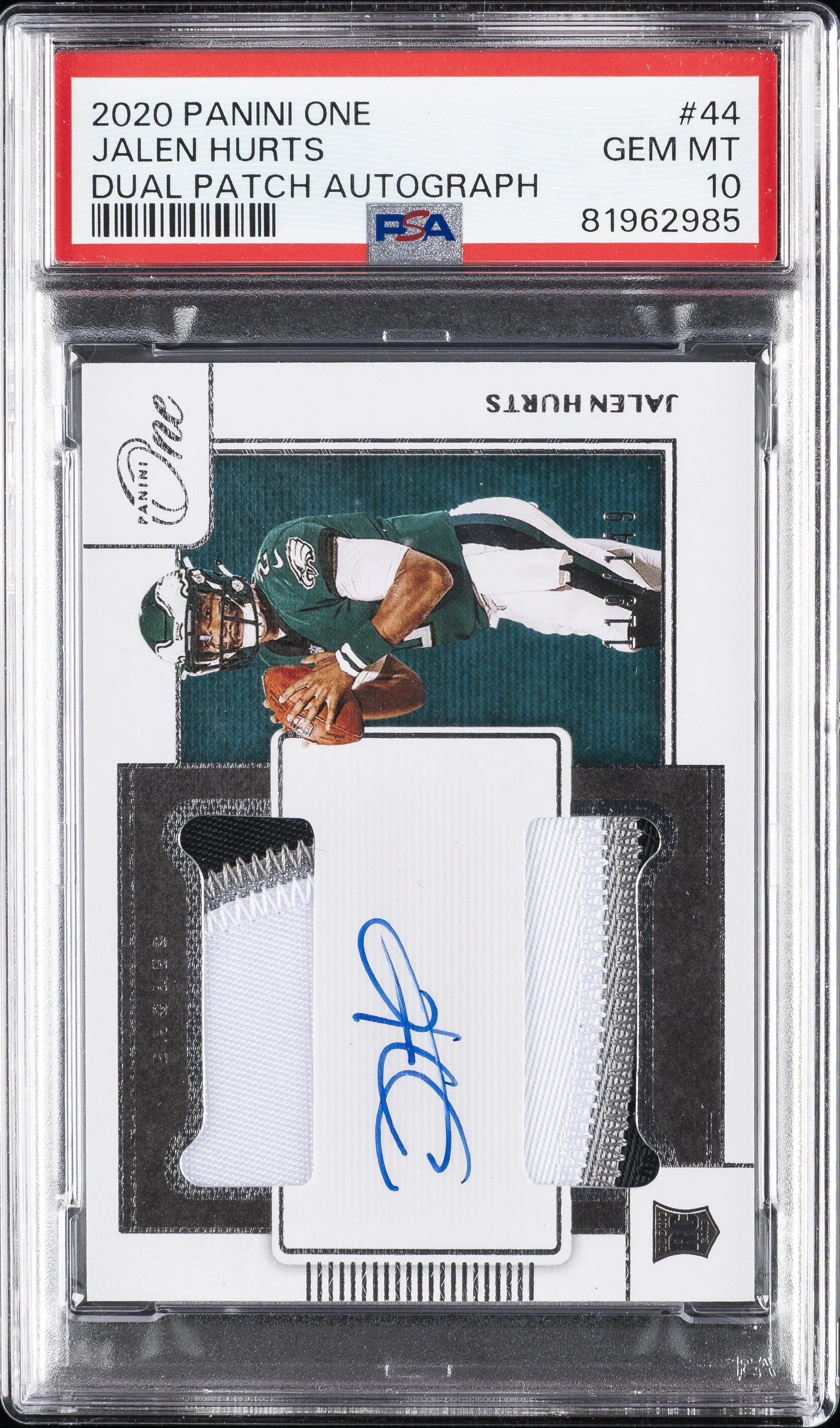 2020 PANINI ONE #44 JALEN HURTS DUAL PATCH AUTOGRAPH 119/149 PSA 10